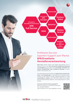 take-e-way bietet Ihnen die passenden internationalen EPR-Lösungen für WEEE, Batterien, Verpackungen, Möbel und Textilien.
