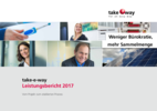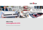 take-e-way Leistungsbericht 2016 Das erste Jahr (2016) unseres gemeinsamen take-e-back-Vertreiber-Rücknahmesystems für Elektro-Altgeräte im Handel ist vor allem dank der großen Unterstützung unserer Mitglieder und Kunden sehr positiv verlaufen und stößt auf viel wohlwollende Resonanz. Zum Dank an all jene engagierten Pioniere der ersten Stunde, die mit uns die ersten wichtigen und zum Teil auch schwierigen Schritte trotz aller bürokratischen Hürden gegangen sind, finden Sie hier den Leistungsbericht 2016 unseres mittelständisch geprägten Rücknahmesystems take-e-back mit den Ergebnissen und Erkenntnissen aus dem ersten Jahr., 4 MB